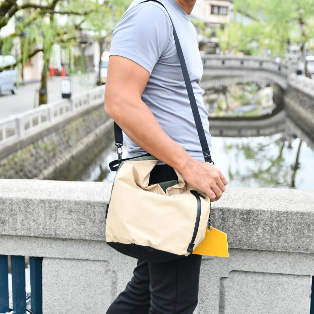 城崎温泉の「外湯めぐり」をテーマにしたバッグ。日常使いにぴったりのサイズ感です。