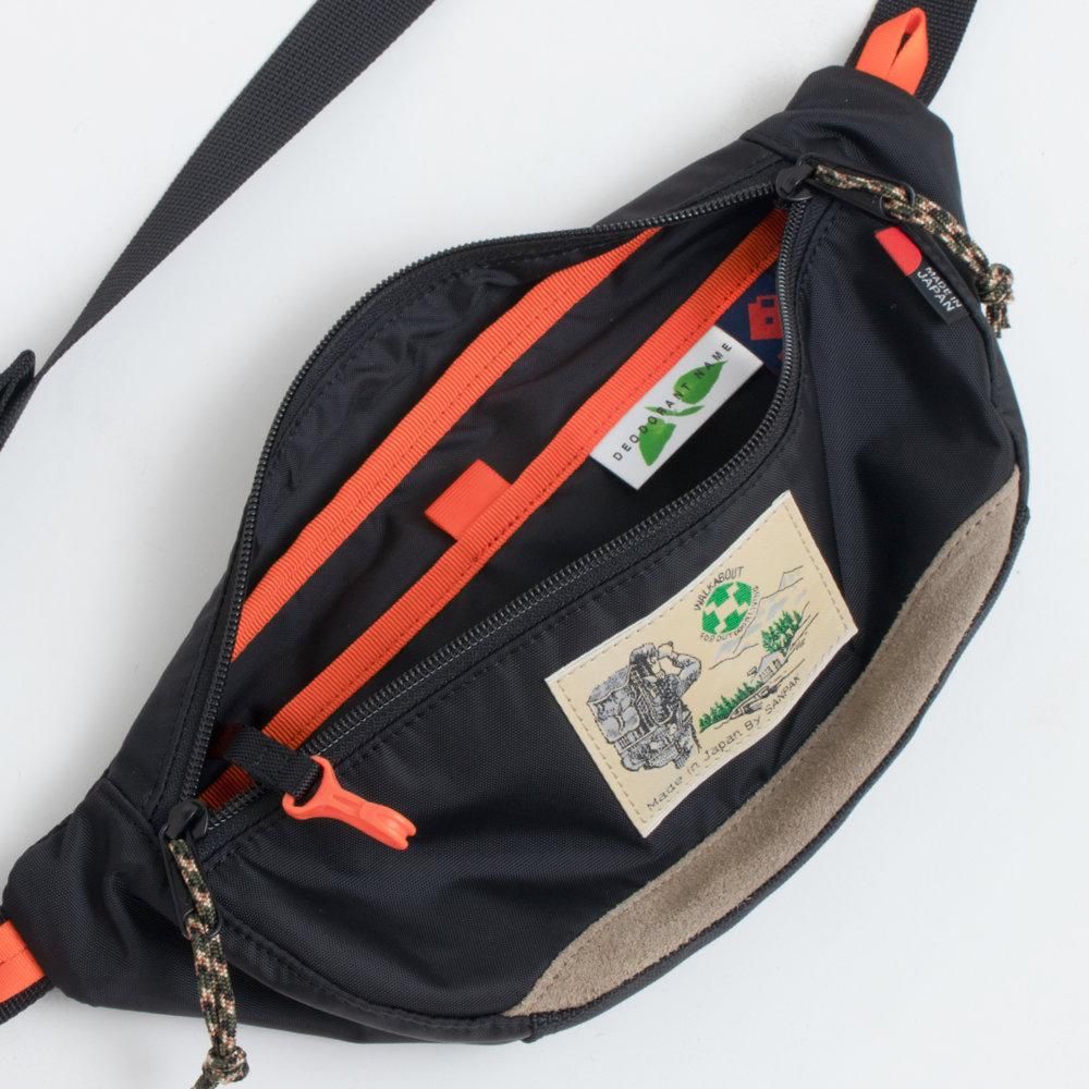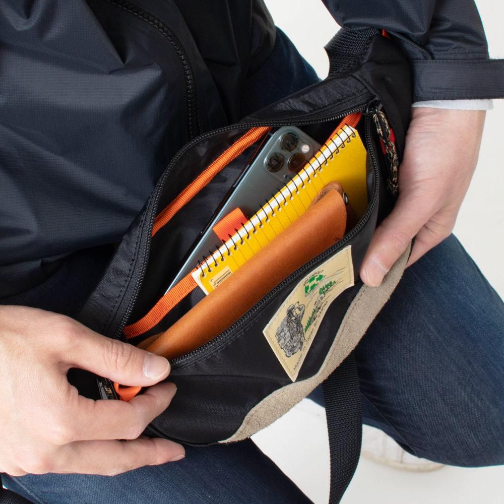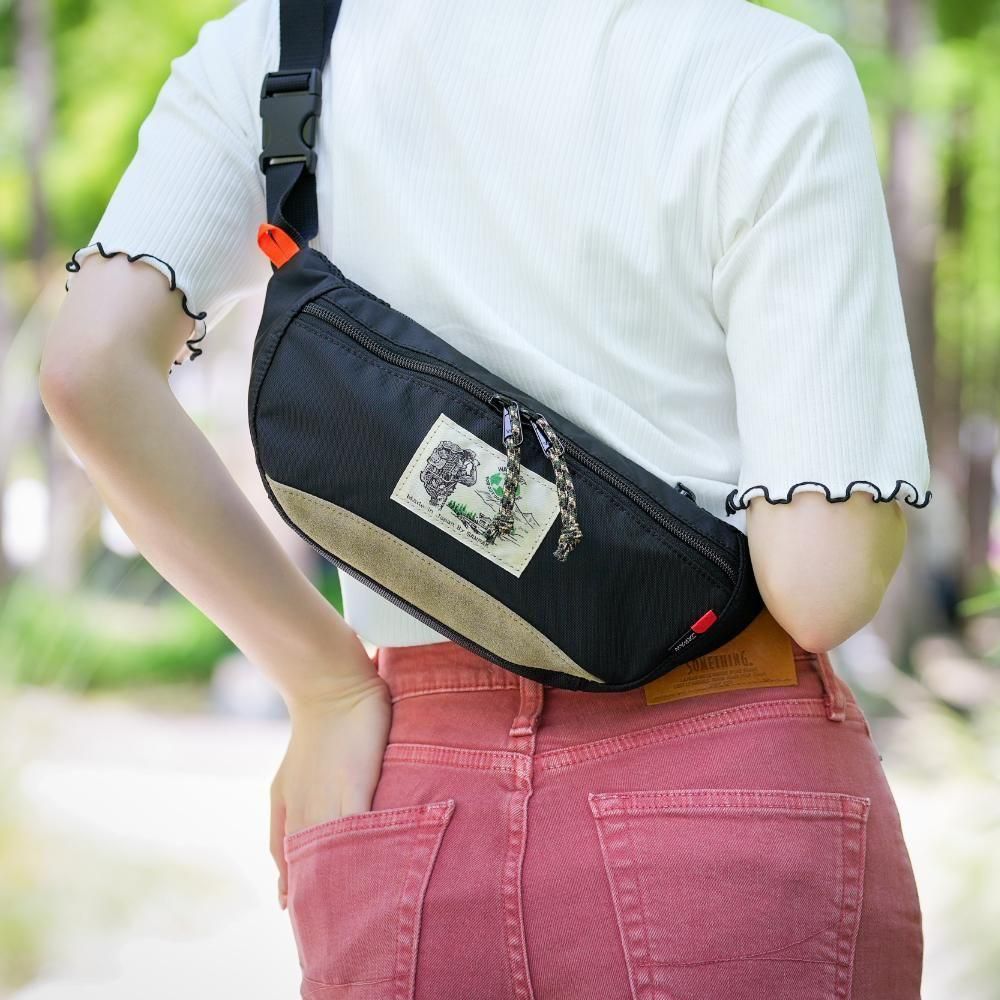 必要最小限の荷物をスタイリッシュに持ち運べるウエストバッグ。